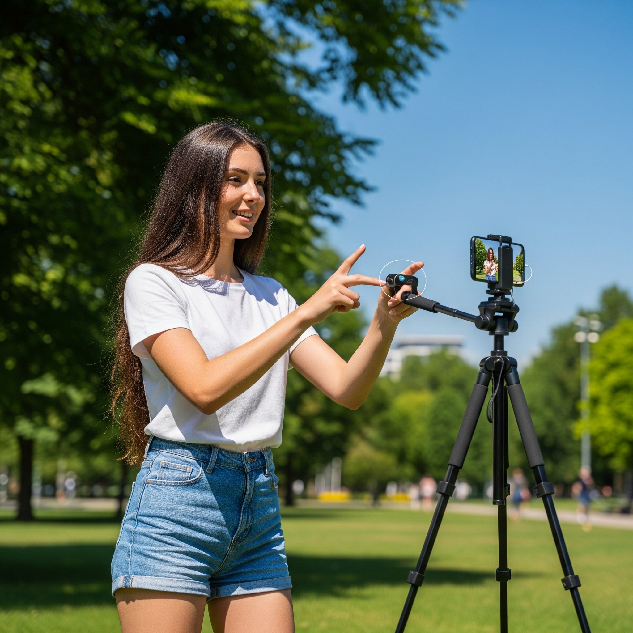Elevate your content effortlessly with our AI Auto-Tracking Selfie Tripod—designed for solo creators, vloggers, TikTokers, and live-stream hosts. The tripod rotates 360°, tracks your face or body using AI, and includes a wireless remote and optional fill light to ensure flawless video—every time.